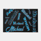 Your name pattern monogram blue red black colour. Personalizable custom name in blue with red colour shadow on a black colour background.