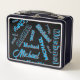 Your name pattern monogram blue red black colour metal lunch box