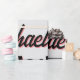 Your name pattern monogram rose colour shadow. Personalizable custom name in black with rose colour shadow on a grey colour background.