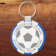 Your own name plus the football team you support on a Keyring. Blue and white stripes color theme.
