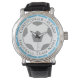 Your own name plus the football team you support on a watch. Light sky blue colour theme.