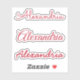 Decorate your laptop, water bottle, case, or other items with three custom stickers featuring your name in 3 different red handwritten script fonts. Add your name in the sidebar. Select "matte white" in the sidebar to make the transparent background around your name white.