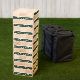 A giant topple tower game set is fun for guests to play at your wedding events and makes a fun keepsake to play anytime afterward. Your names and hearts on the front and "Love, Laughter and Happily Ever After" on the back on a emerald green background or any color of your choice (use our edit tools to change the color.) 54 game pieces, 25" high when done, fit into an included durable carry bag with zipper and handles for easy transport.