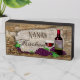 Customize this kitchen sign with the name of your choice. Personalized kitchen shelf sign has a wine bottle and glass, with grapes, on a Tuscan style background. Make a great gift for a Grandmother, Grandfather, Uncle, Aunt, friend, relative, or yourself. Anyone who enjoys wine, or has a Tuscan style kitchen.