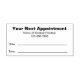 This stamp says "Your Next Appointment" at the top. There are also lines for the date and time of the appointment. There's also display text you can edit to show the medical practice name and phone number (or a custom message). All text can be edited or deleted.