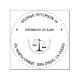 Modern typography attorney at law / legal services office personalized stamp template featuring symbolic scales of justice with laurel leaves. You can replace the image with your own logo.++++++++++++ Suitable for any business corporate services professionals. Customize with your details!