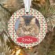 A cute Christmas ornament for the family pet, this design has a Christmas harlequin pattern frame in red, green and gold encircling your pet's photo. Simply replace the sample cat photo with your own pet's photo and edit the sample pet name with your pet's name. You can re-position your pet's photo by dragging it in any direction and enlarge or shrink it to center it to your liking. The design is on both sides of the ornament. You can either use one pet photo on each side, or two different photos.