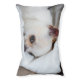 LOVE, love, LOVE this doggy pillow/bed. I purchased this dog bed a few years ago, in a different design, so I know it is a quality dog bed. The cover zips off for easy laundering and it doesn't shrink or pill after multiple machine washings. I use it at the end of the chaise section of my sofa as a bed for my dog and to help keep the sofa clean where she lays. I uploaded this photo design with her name and a picture of her sleeping on another pillow on our bed, with waves added in because I just know she's dreaming of being on the beach. When I received this new one, I replaced the old one on the sofa and Sara immediately laid down on it and knew it was for her. If you have a larger dog (Sara is about 25lbs) you'll want to order the larger size. Zazzle's printing and colors are always perfect. I'm a photographer, and I know how I expect the colors to come out, and they always do with Zazzle.