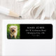 Make your mail sending easier with this black personalized return address label featuring custom address text and a photo of your lovable pet. The classic white text on black can be modified to any color or font combination using the customize function.