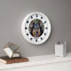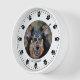 Personalizable photo template for pet owners featuring Destei's stylish paw design clock face that can be changed to any color. While the sample template has a black color clock face, you can choose a clock face color that best compliments your custom photograph. There is also a personalizable text area on this design.