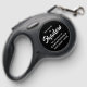 A photo of your dog or cat on the front, and name of pet, name and phone number of human owner on the back decorates this unique and fun custom retractable pet leash. It's easy to personalize the photo and name and other text. Background is black and white but it's easy to change it. All Rights Reserved © 2024 Alan & Marcia Socolik.
