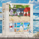 Binder featuring a beach theme on a light wood background. You can replace the illustrations with your own photos and drag, scale or delete the seagull and starfish images. Beautiful for a coastal rental apartment or beach house rental as well as a summer holiday photo album.