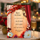 A romantic Save the Date card featuring a classic Italian Mediterranean design with anemone and gerbera daisy flowers on a painted background with colorful fall leaves and a festive lantern. If you don't want to use your own photo you can delete the template and reveal a painted background with (optional) falling colorful leaves on the back of the card. Beautiful if you plan a fall or autumn wedding celebration.