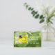 Business card featuring your own photo (optional) framed by a green nature image. On the back is space to add a description for and information about an essential oil, to give to your customers. You can also use this area to add a next appointment. Great for anyone using essential oils as a professional or an aroma therapist.