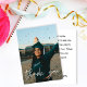 Send your guests thanks with your photo and a graduation hat on white. The message can be erased to write a handwritten one. Includes an option for a pre-written message. for vertical photos and to order one card at a time.