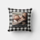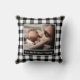 Your Photo Name Black White Gingham Pattern Border Throw Pillow
