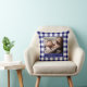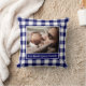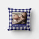 Your Photo Name Blue White Gingham Pattern Border Throw Pillow