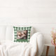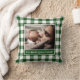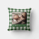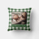 Your Photo Name Green White Gingham Pattern Border Throw Pillow