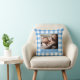 Your Photo Name Light Blue White Gingham Border Throw Pillow
