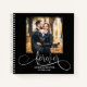 Guests can sign their best wishes, even add instant photos in this elegant spiral-bound guest book featuring the word forever in a beautiful script, your favorite photo with an inside border of any color, we show black, and any background color, we show black. Your name, date and any other info in chic lettering. CHOOSE HARD or SOFT cover and the STYLE PAGES you want inside.