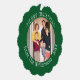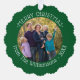 Your Photos and Name Green Border Christmas Ornament Card