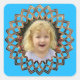 Add a picture of yourself or a loved one, even a pet! A lovely gift. A picture in a golden frame on a blue background.