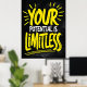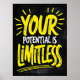 Unlock your full potential with this inspiring wall art poster featuring the quote "Your Potential Is Limitless." Perfect for any space, this piece serves as a daily reminder to believe in yourself and strive for greatness. Ideal for home or office decor, it encourages a positive mindset and personal growth.