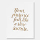 A truly heartfelt and evocative quote: "Your presence feels like a slow sunrise."