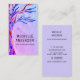 This unique business card is decorated with a rainbow-colored mosaic tree design on a purple background and stylish modern typography.