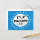 Bold text reading "your purpose is" is centered against a blue background. The black text sits on a white circle with white stars around it, providing a playful contrast against the colorful backdrop.
