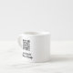Coffe Shop Promotional Mug. Bar, Restaurant Or Cafe espresso coffee cup "with QR Code. Show off your own QR Code Design. Let others scan your QR Code With their mobile phones! Replace image with your own uploaded QR Code. Includes name of the establishment. Black and white. Expresso mug. There are various websites that allow you to create and download QR Codes free. QR Codes can be created for websites, emails, Wifi, Vcards, and many other uses. One example is https://www.qr-code-generator.com