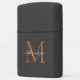 Chic, modern and simple monogrammed zippo lighter features your name in white elegant handwritten script calligraphy on a matte black background with your monogram in gold. Simply add your name and monogram in stylish typography. Perfect luxury gift for birthday, celebrations & holiday. Exclusively designed for you by Happy Dolphin Studio.