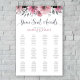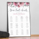 12 Table Wedding Seating Chart with pink floral border. This seating plan is also available in a variety of table numbers including 6, 8, 9, 10, 15, 16 & 18 tables. Please check out my Zazzle store for the full range.