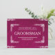 This 5" x 7" beautiful time to Your Service Is Requested as Best Man Groomsman invitation card. This is best for the groom. If you looking at asking someone to be your groomsman for your future wedding, then why not choose this groomsman cards. This customized invitation card will make your friend, brother, cousin, nephew, son or whoever else you choose feel that extra special. This invitation is easily personalized by clicking on the customize it button under the image where you will be able to change the text, font and size. You can invite your best buddies in style with these classy invitations. It is suitable for the Best Man or for Groomsmen. Send them this groomsmen card.