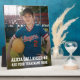 Custom plaque with easel featuring your sports photo with personalized name, player number, and team name in bold collegiate typography. Suitable for any photo, all ages, any sport.