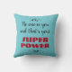 Express yourself with this inspirational quote. "No one is you and that's your SUPER POWER" The design is in the type font with the first have of the quote in a script font and the words SUPER POWER, in a bold, red type font. The background color can be customized to a color of your choice.