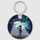 Your Text Alien Peace Sign UFO Planet Blue Galaxy Keychain