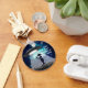 This out of this world keychain features a retro UFO spaceship and an alien landing in a dark field. The friendly alien is illuminated by the UFO's beam and is making a peace sign against a gorgeous dark blue galaxy stars background with a full moon visible. There is a spot to customize the keychain with your own text. Just hit the Personalize button to edit the text, or hit the Edit button to make any font or text color changes. Makes a great gift for lovers of the sky, stars, galaxy print, astronomy, physics, science fiction, UFO's, UAP's, astronauts, aliens, Mars, and extraterrestrials. This design can be transferred to any item in the Zazzle marketplace.