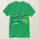 Add your own text to these fun blue, green, and yellow chameleon tshirts. The chameleon is walking across a light colored branch, in front of a blended blue green and yellow background, done in lighter shades. Off to the sides are wide blue green and yellow leaves. The text is written in white and is easy to customize or delete on the template form. Thank you for shopping at CherylsArt on Zazzle.
