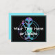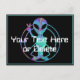 Peace earthlings! Send a note in style with this customizable alien themed postcard. This design features a cool tie dye hippie print alien over a peace sign. The colorful blue, green and pink hued alien is on a black background with a customizable light teal or turquoise blue border. There is a spot in the center to add your own text. The default text is in white print in a computer style font. The default reverse side color is bright turquoise blue. Just hit the Personalize/Customize button to edit or delete the text, font, or to change the border or reverse side shade to the color of your choice. This design can be transferred to other items in the Zazzle marketplace. Makes a great decoration or gift item for lovers of cute extraterrestrials, peace, hippie tie dye patterns, space travel, aliens, UFO, UAP, astronomy, or science fiction!