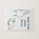 Cute outline drawing of duck looking at bunny rabbit, with a template placeholder for your text, is printed on custom puzzles. The puzzles are a fun choice for Easter, and the animals and the letters can be colored in! Thank you for shopping at CherylsArt on Zazzle.