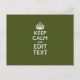 Your Text Keep Calm And on Olive Green Decor Postcard
