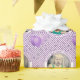 The graphic design is a simple stripes pattern with lavendar and white stripes, balloons, and a round picture frame for you image.
