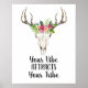 Modern, hip and cool! "Your vibe attracts your tribe" quote with striped antler skull and tropical foliage embellishment