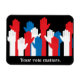 A reminder to all to exercise your civic duty and constitutional rights by voting. "Your vote matters" text with red, white and blue hands.