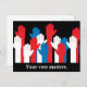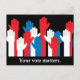 A reminder to all to exercise your civic duty and constitutional rights by voting. "Your vote matters" text with red, white and blue hands.