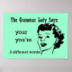 Grammar Lady says: your and you're are two different words! Grammar Lady wants you to remember that your is a possessive belonging to you and you're is a contraction of you are. Simple single color design with text and face.