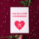 A cute, fun and nerdy Valentine's day card with a pun on "You're a cutie pie". The design feautures a pi symbol on a red heart and 3.14159265359 in red text on a pink base.