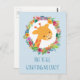 A postcard with a funny pun which says: You are all giraffing me crazy. The image is a cute smiling giraffe surrounded by a wreath of tropical watercolor flowers.