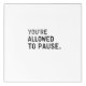 "A minimalist design featuring the empowering phrase 'YOU'RE ALLOWED TO PAUSE.' in a bold, distressed black font against a light grey background. The design serves as a gentle reminder to take a break, rest, and prioritize self-care amidst life's demands. It promotes mindfulness and mental well-being."